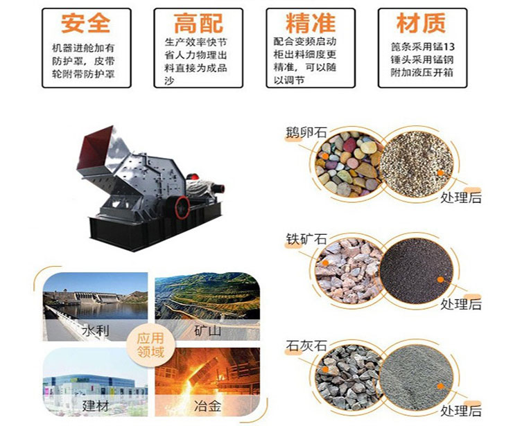 液壓開箱制砂機它可廣泛應(yīng)用于金屬和非金屬礦石、建筑材料、人工造砂以及各種冶金礦渣的破碎與整形。而且銘德生產(chǎn)的液壓開箱制砂機適用于莫氏硬度小于9級的脆性物料,不適用于粘性物料以及含泥土較多的石料。液壓開箱制砂機可以用于河卵石,鵝卵石的破碎制砂機。目前自然砂資源急劇匱乏,而人工砂河卵石人工砂就成了自然砂的替代品登上了歷史舞臺!毋庸置疑的河卵石人工砂石料是混凝土的原料!